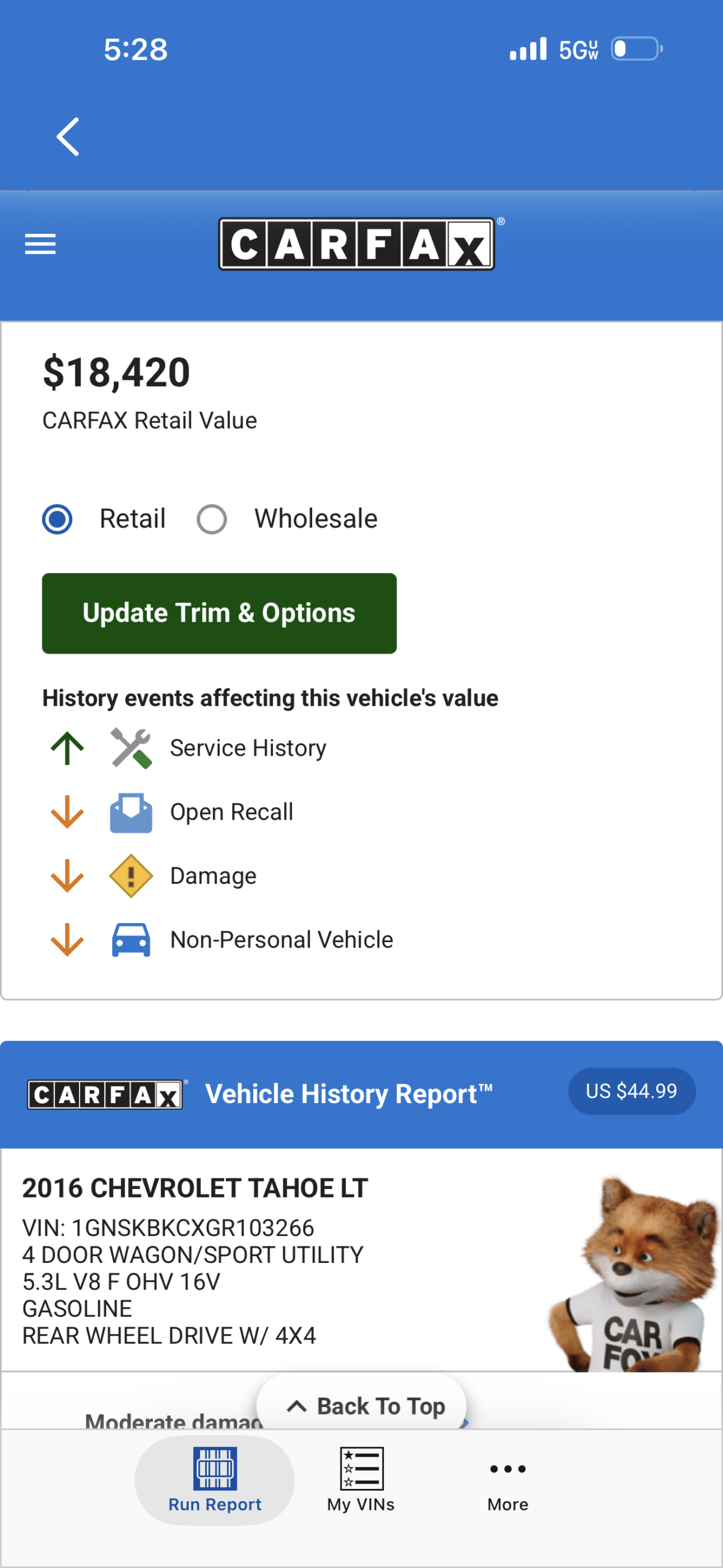 | Vehicle | 5.3 AT (355 Hp) 4WD |